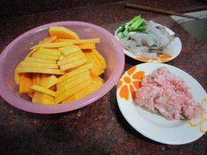 3. 饼瓜蒸虾:将饼瓜切成片,铺在盘底,放上虾,蒸熟后淋上适量的酱油和香油,既保留了饼瓜的清甜,又让虾肉更加鲜嫩。